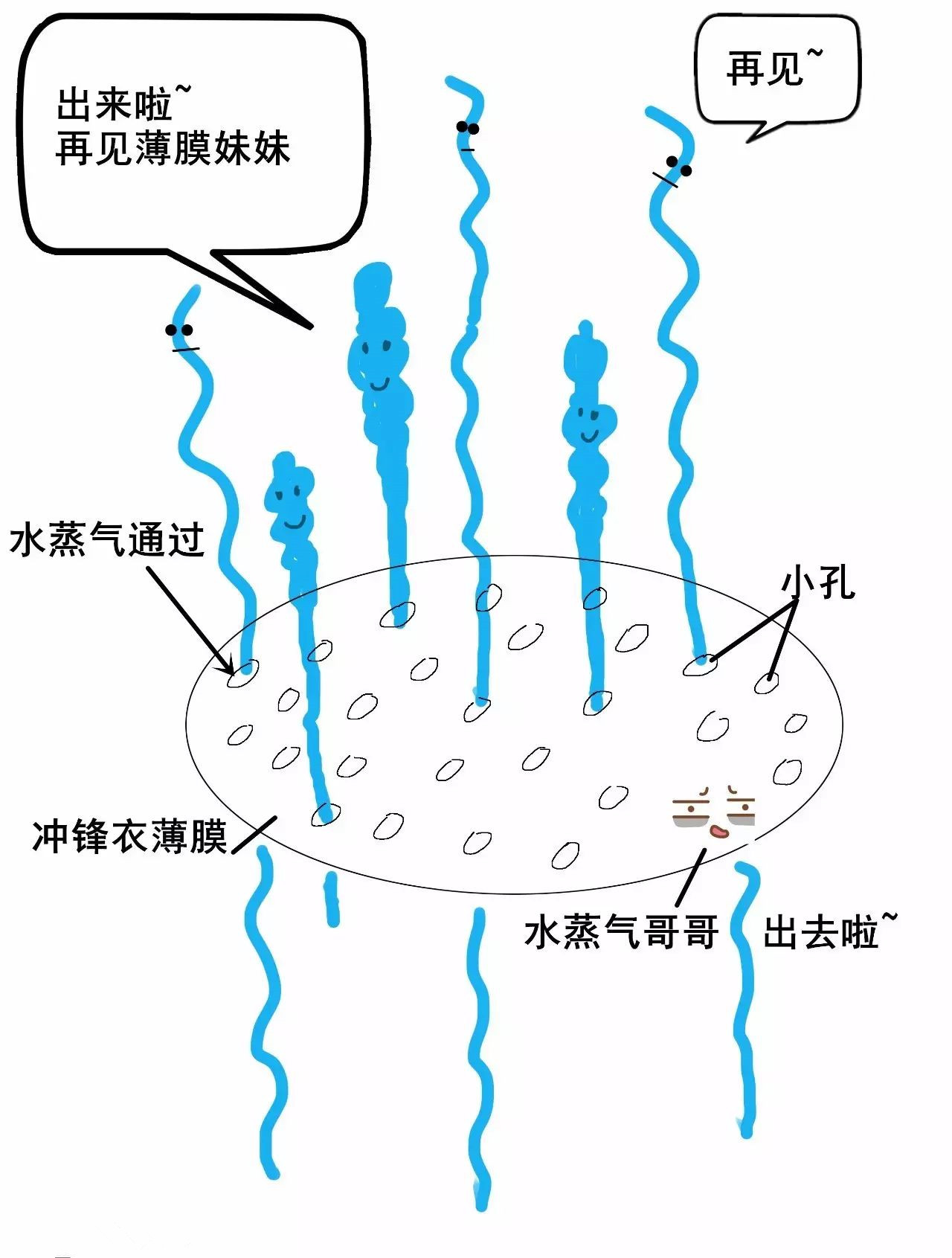 2)因?yàn)樗魵獗人樾『芏啵魵夂芗?xì)小,可以鉆過沖鋒衣薄膜的小孔排出。