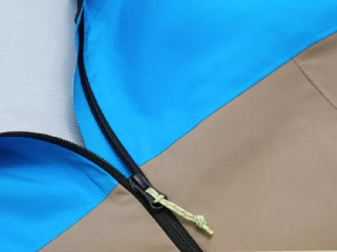 防水拉鏈:整件沖鋒衣的拉鏈均采用防水壓膠拉鏈,亦可根據(jù)客戶要求定制。